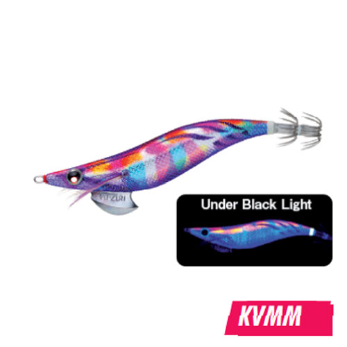 Isca de pesca em forma de lula colorida com brilhos sob luz negra