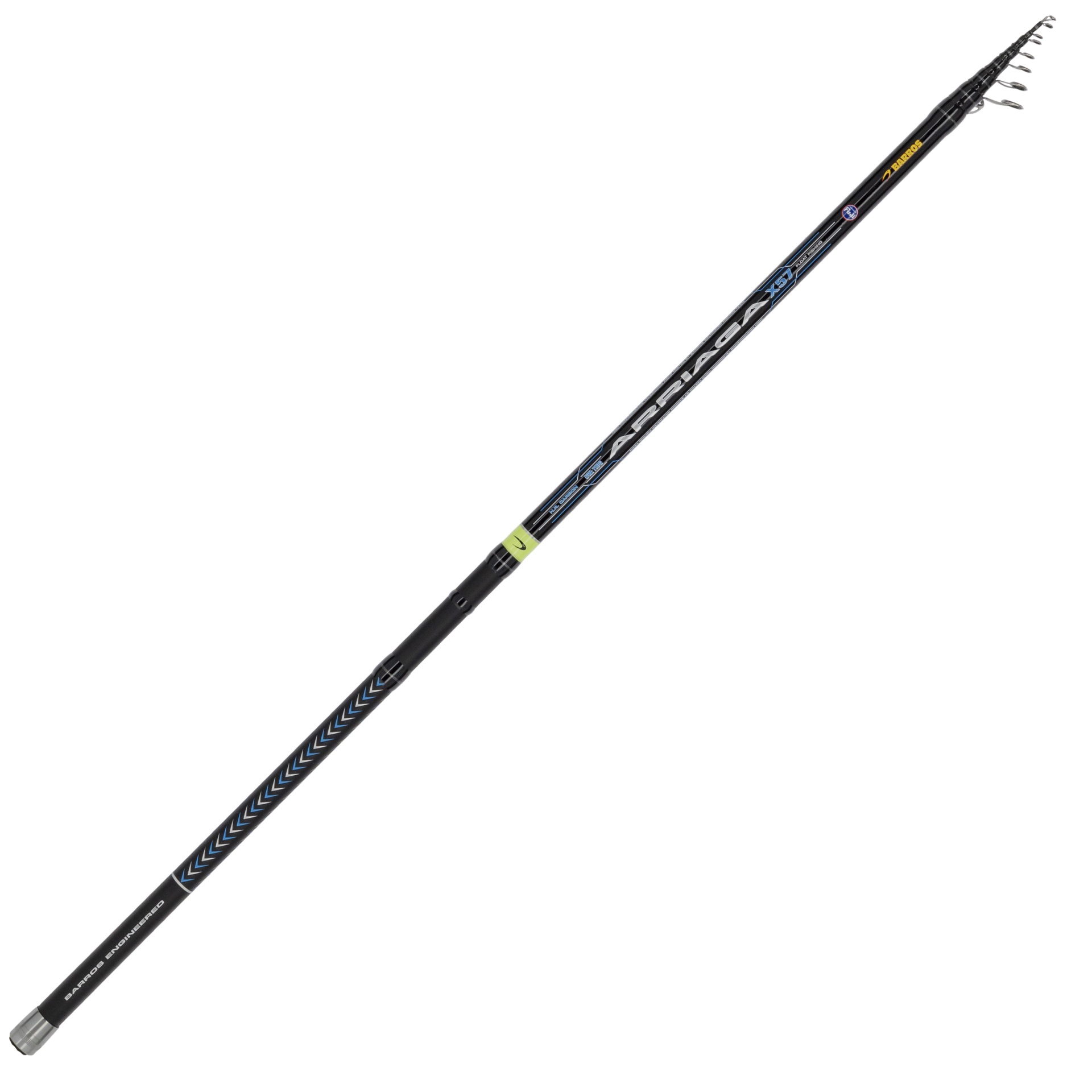 Cana espetacular, em carbono reforçado com 3 Way Carbon Wrap, para todas as pescas de boia e chumbica. Devido ao seu comprimento quando fechada (apenas 1.28m), é uma cana muito fácil de transportar nas falésias. A ARRIAGA X57 , com 5.70m de comprimento, vem montada com passadores Fuji K e porta carretos tipo plate.