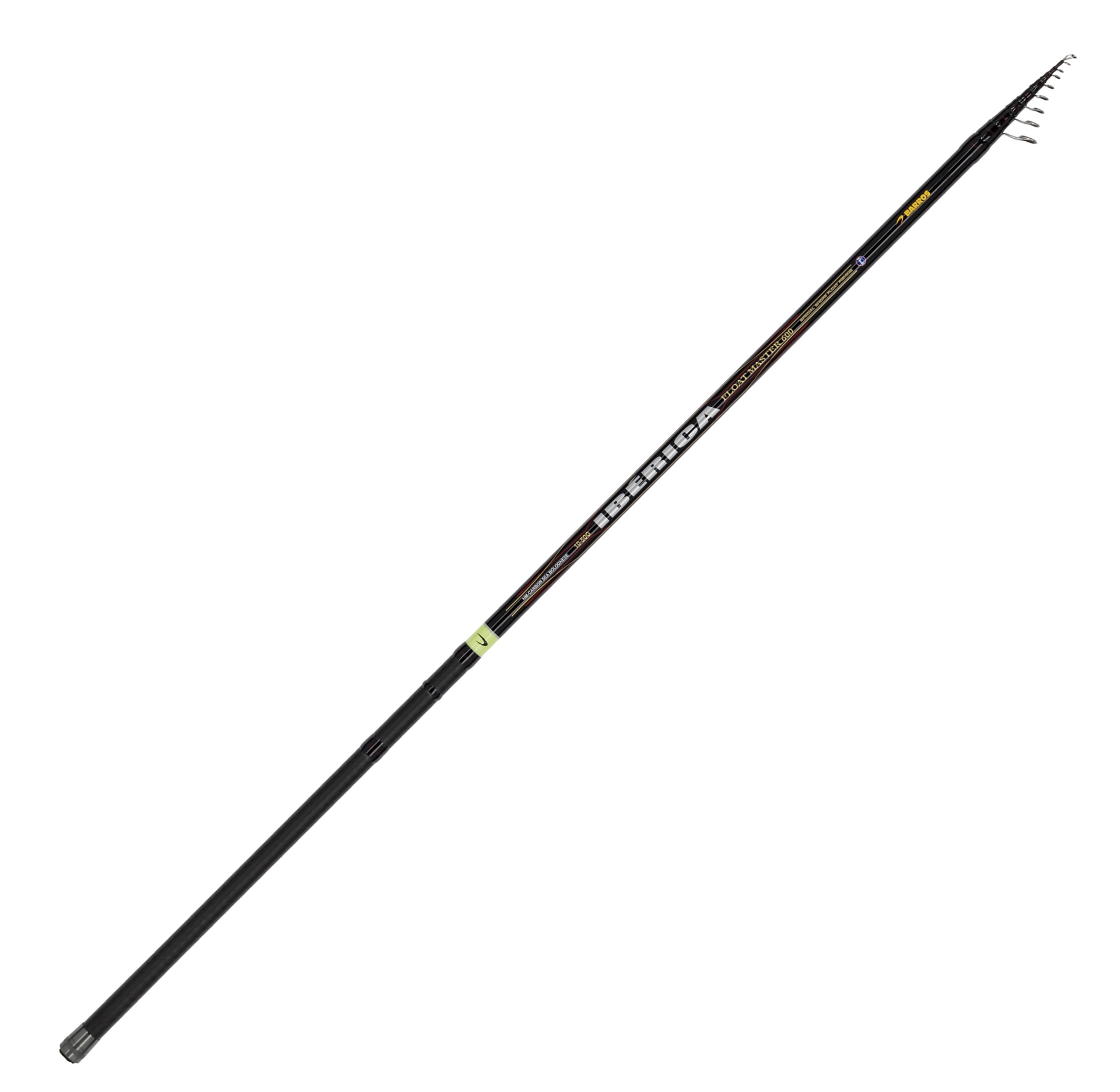 A BARROS orgulha-se de ter desenvolvido esta cana para pesca com boia tradicional de caneta, ou até mesmo para pescar com pequenos piões. O objetivo, que foi completamente alcançado, era conseguir uma cana leve e de altíssimo desempenho, mas com um preço razoável. A IBÉRICA FLOAT MASTER é uma cana em carbono reforçado com X-CARBON TAPE, usando a mesma tecnologia da famosa TITANUS F1, montada com passadores Fuji K Alconite e porta carretos Fuji LS. Disponível em 6.00m e 7.00m, tem capacidade para pescar com boias até 50g, sendo uma excelente opção para pescar sargos, robalos e tainhas a engodar com sardinha e até para pesca de competição às tainhas, usando linhas finas e boias muito pequenas.
