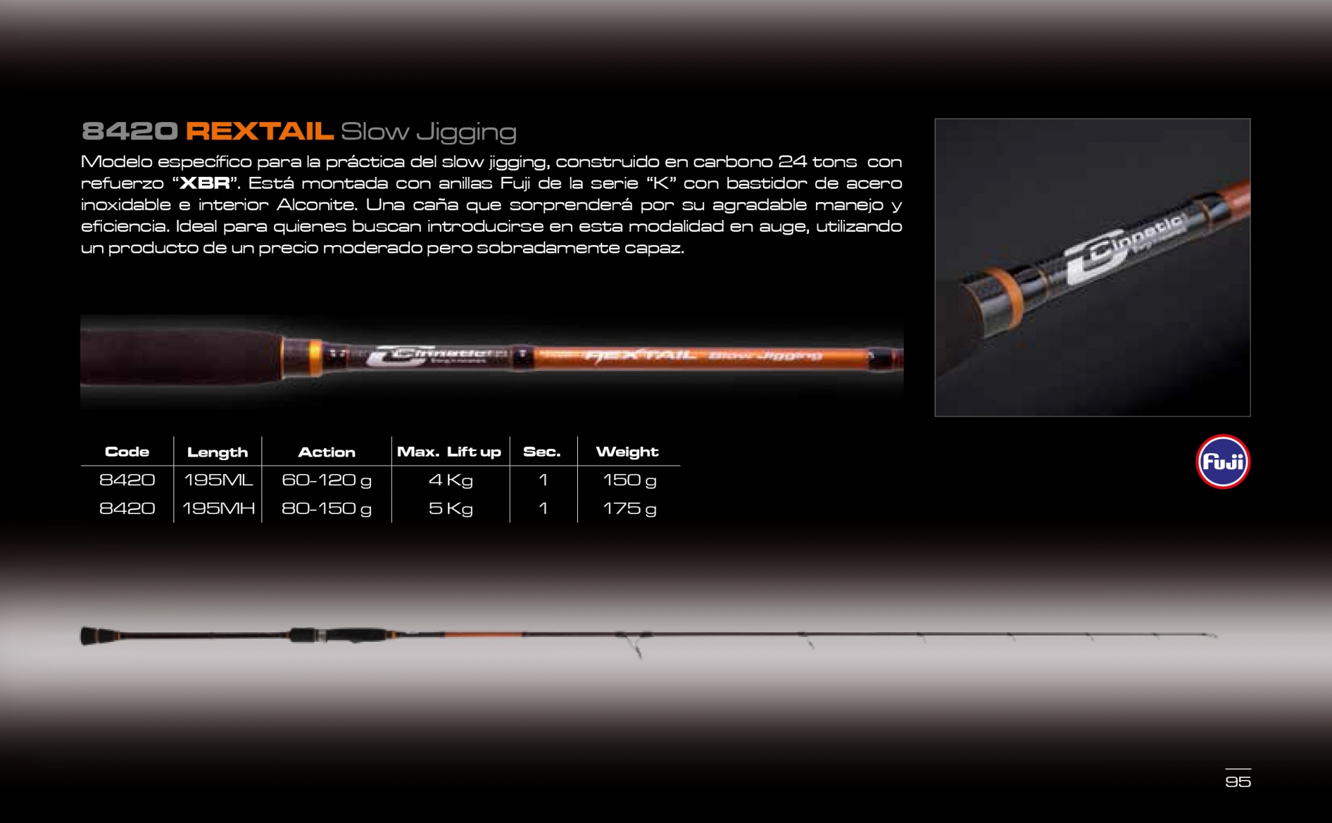 Específico para a prática do Slow Jigging, cana construída em carbono com reforço “XBR”.