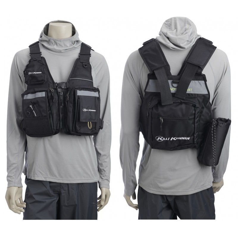 Colete de pesca preto KALI KUNNAN com bolsos e porta-vara