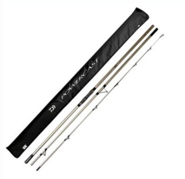 A cana DAIWA POWERCAST SURF é uma novidade que a Daiwa estudou a fundo para pescadores exigentes, excelentes acabamentos, carbono de primeira qualidade e todo FUJI, e detalhes que fazem a diferença com a grande espessura de suas varas de competição, como na pintura completa de os bujões (o negro de fumo não é visível) e as buchas metálicas reforçadas na segunda e terceira seção. Punho ergonómico e confortável. Contrapesos de 100gr na sua totalidade divididos em 2 (50gr e 50gr). Vara com a primeira seção um pouco mais longa que as outras duas, e a segunda seção também mais longa que o ponteiro.