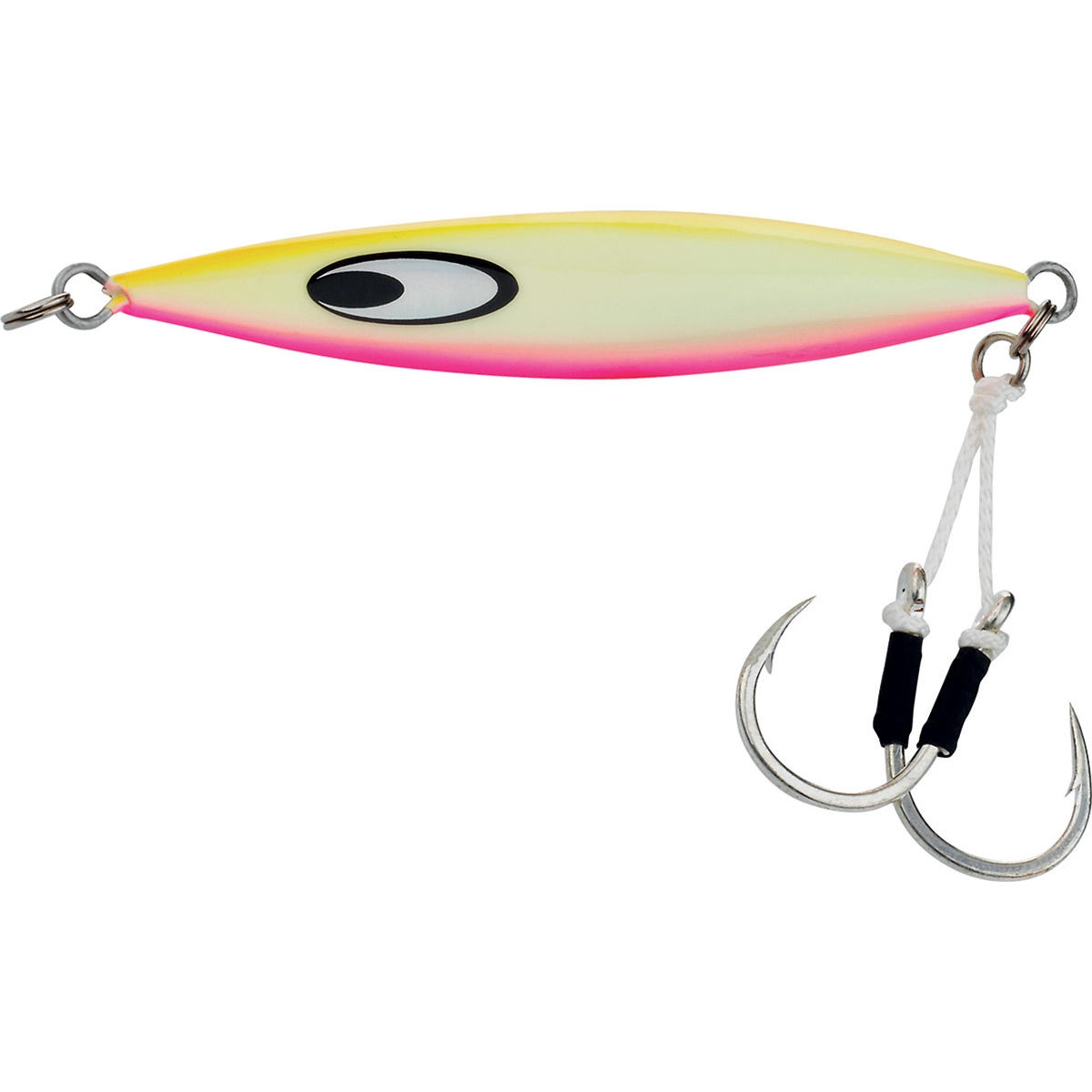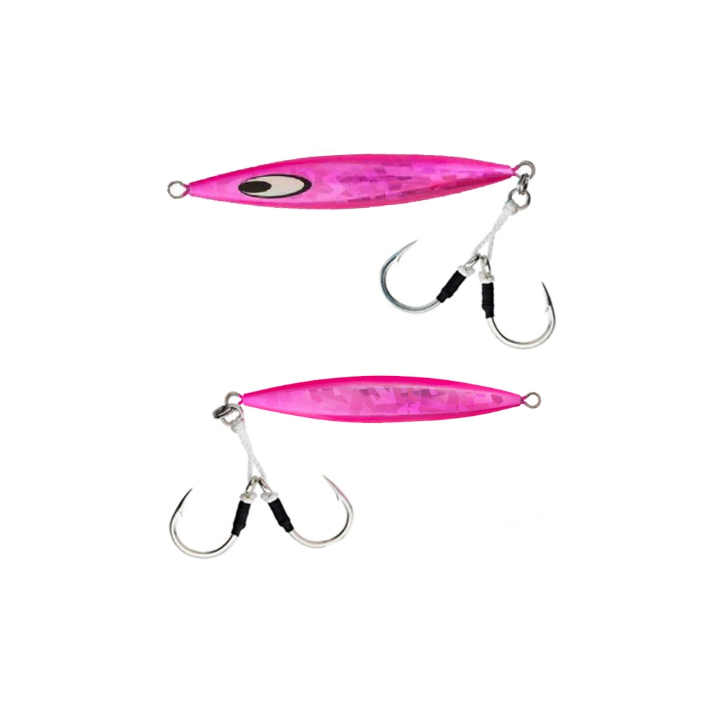 Este jig com perfil afilado oferece um equilíbrio centrado que o torna um slow jig perfeito para as prospeções eficazes sobre o fundo. Com efeito o seu design permite que desça rapidamente na coluna de água sem perder tempo nem abrandar demasiado na corrente. Durante as animações verticais e especialmente durante as fases de descida ele comporta-se como um slow jig típico, borboleteando. É fornecido com um duplo assist com montagem forte e com anzóis VMC 7264.