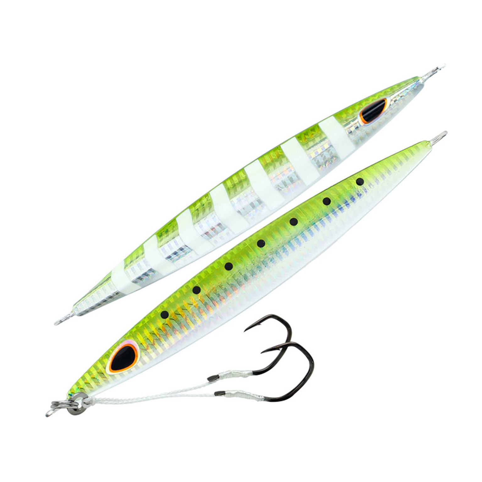 Design de ponta de faca impecável e forma assimétrica foi projetado para cortar a água e descer profundamente, como nenhum outro gabarito micro. Manter o gabarito estável durante a sua descida são os ilhós em linha que aumentam a ação de vibração sob uma linha fraca.