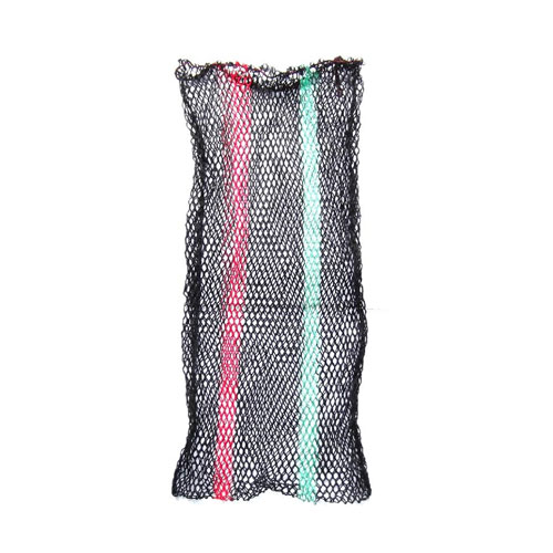 Rede de malha preta com riscas vermelha e verde sobre fundo branco
