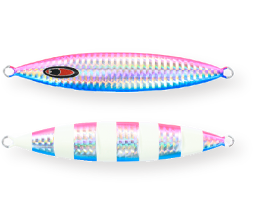 Iscos metálicos rosa e branco para pesca com superfície holográfica