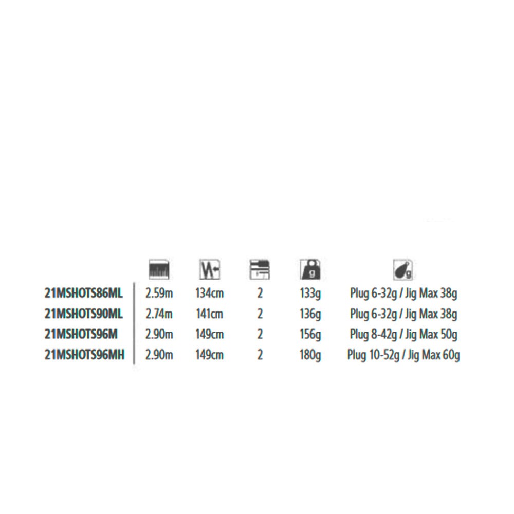 A cana MOON SHOT foi concebida para a pesca costeira em água salgada a partir de praias, rochas e até paredes de portos, usando hardbaits para pescar robalos e outras espécies de águas rasas. Com uma sensação de leveza, equilíbrio e excelente velocidade de ponta, combinado com desempenho de lançamento excepcional, a MoonShot foi projetado no Japão e construído em blanks de carbono de alto módulo com tecnologia Hi-Power X para desempenho superior. recuperação do ponto durante o lançamento. As guias Fuji K-Type são usadas em toda a linha para melhorar o fluxo da linha e minimizar danos a tranças e monos de alto desempenho. Todos os modelos são um design de duas peças e o modelo ML mais leve de 2,59 m (8'6") pode acomodar iscas com peso tão baixo quanto 6g até 32g, enquanto o poderoso modelo MH de 2,90 m (2,90 m) 9' 6 " cobre iscas de 10g a 52g e jigs de metal de até 60g.