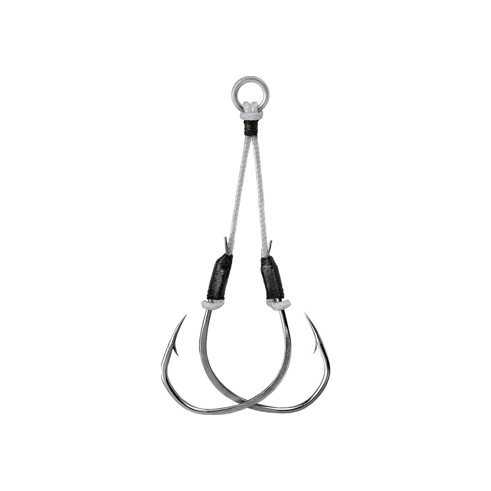 Anzol de pesca duplo com corda cinzenta e detalhes pretos