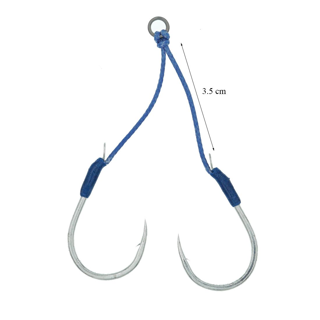 Gancho de pesca duplo azul com anzóis metálicos prateados