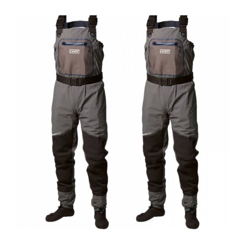 Wader respirável em tecido laminado com 3 camadas. Costuras seladas Grande bolsa de peito exterior com zíper à prova d água. ATENÇÃO: Este bolso não é impermeável nem pode ser submerso na água sem afetar os objetos contidos dentro dele.