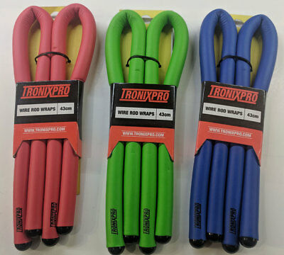 Eles são fantásticos para prender varas a grades ao pescar em um pontão ou em um barco, proporcionando um pouco de segurança extra para o pescador. Eles também são bons para manter as hastes juntas, manter itens amarrados para transporte. Cada envoltório é feito de um pedaço de arame flexível que é coberto por um material durável, aderente e macio como uma esponja. A esponja ajuda a proteger as hastes quando são enroladas juntas e quando enroladas contra grades, etc. Eles vêm em conjuntos de dois